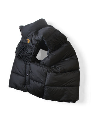 The Kapital Ring Coat is a unique outerwear piece renowned for its distinctive design, often featuring a circular sil...